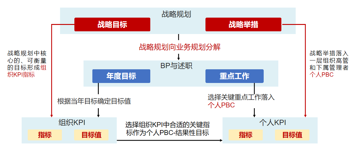 一.績效管理首先是要進行戰(zhàn)略解碼。戰(zhàn)略解碼,基于戰(zhàn)略目標(biāo)解碼到關(guān)鍵任務(wù),到關(guān)鍵績效指標(biāo);描述戰(zhàn)略、衡量戰(zhàn)略、管理戰(zhàn)略。通過戰(zhàn)略解碼,將戰(zhàn)略目標(biāo)納入組織績效目標(biāo)及高管PBC。 二. 責(zé)任中心定位:組織績效,個人績效要源自戰(zhàn)略,上下對齊,確保戰(zhàn)略的一致性。各層組織KPI,要圍繞公司、業(yè)務(wù)單元及各區(qū)域的關(guān)鍵戰(zhàn)略落地,不能承載太多的“管理訴求”而導(dǎo)致KPI牽引不夠聚焦。 1. 公司對部門的訴求,作為組織績效的輸入; 2. 業(yè)務(wù)短板及管理訴求: 3. 針對業(yè)務(wù)短板制訂組織績效指標(biāo)。
