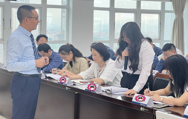 ![]() 郭老師先講解“職業(yè)化”就是一種工作狀態(tài)的標準化、規(guī)范化、制度化,即在合適的時間、合適的地點,用合適的方式,說合適的話,做合適的事。并引導(dǎo)大家小組討論:“我心中標準企業(yè)的職業(yè)素養(yǎng)”,學(xué)員們踴躍發(fā)言,不斷豐富職業(yè)化的內(nèi)涵。