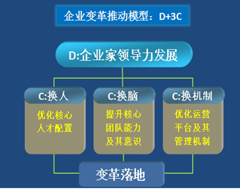 我們再來看看企業(yè)變革的問題:企業(yè)變革是一個(gè)復(fù)雜的系統(tǒng)工程,企業(yè)變革之所以復(fù)雜,因?yàn)樯婕暗狡髽I(yè)核心競爭能力和優(yōu)勢的重構(gòu),這個(gè)重構(gòu)的過程,就需要對企業(yè)家領(lǐng)導(dǎo)力按照企業(yè)戰(zhàn)略的需要進(jìn)行針對性發(fā)展,對核心團(tuán)隊(duì)進(jìn)行必要調(diào)整,對骨干員工專業(yè)能力和工作優(yōu)意識進(jìn)行針對性提升,同時(shí)對管理機(jī)制進(jìn)行優(yōu)化。企業(yè)變革的推動(dòng)模型,詳見下圖: