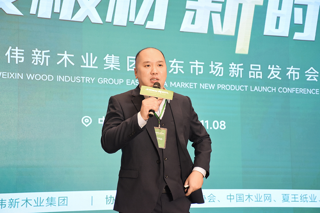 現(xiàn)場,作為偉新木業(yè)集團(tuán)上游的優(yōu)秀合作伙伴,夏王紙業(yè)總經(jīng)理王瑾和添麗裝飾紙總經(jīng)理助理錢崇軒分別上臺與大家分享企業(yè)的產(chǎn)品特色與技術(shù)品控,展現(xiàn)了作為上游紙業(yè)強(qiáng)大的實(shí)力,也凸顯出偉新木業(yè)集團(tuán)前瞻性與產(chǎn)品質(zhì)量的優(yōu)越性。