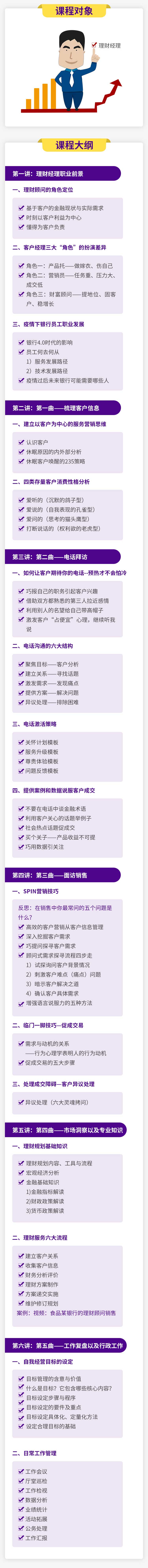 這些問(wèn)題成立很多理財(cái)經(jīng)理心中的困惑。本課程通過(guò)簡(jiǎn)短的6小結(jié)內(nèi)容,梳理理財(cái)經(jīng)理在日常工作中作為重要的5項(xiàng)工作。同時(shí)展望了理財(cái)經(jīng)理未來(lái)職業(yè)前景。在理財(cái)經(jīng)理崗位奮戰(zhàn)的精英們和即將步入理財(cái)經(jīng)理崗位的朋友們,快來(lái)看看吧!