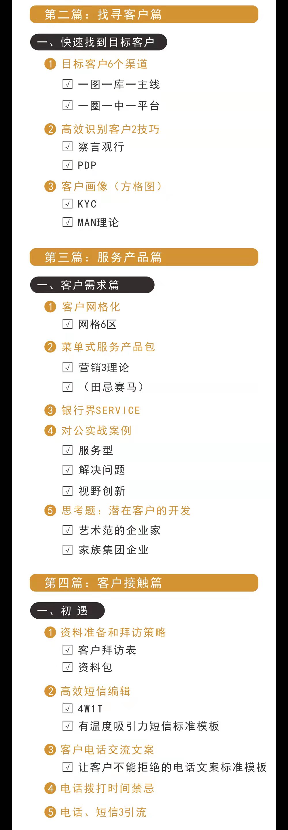 第二篇:找尋客戶篇快速找到目標(biāo)客戶目標(biāo)客戶6個渠道一圈一中一平臺高效識別客戶2技巧察言觀行