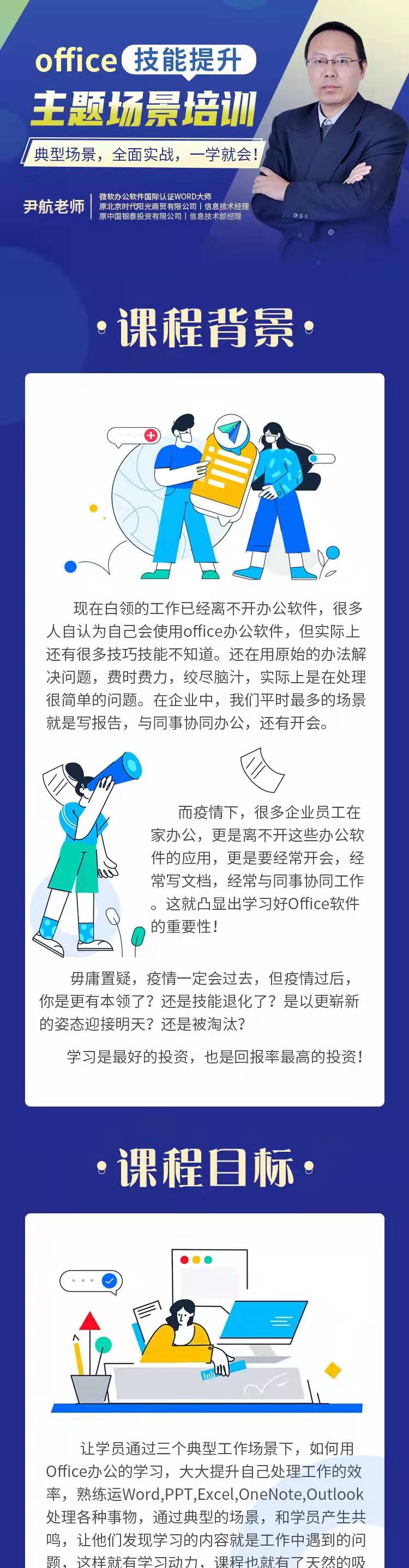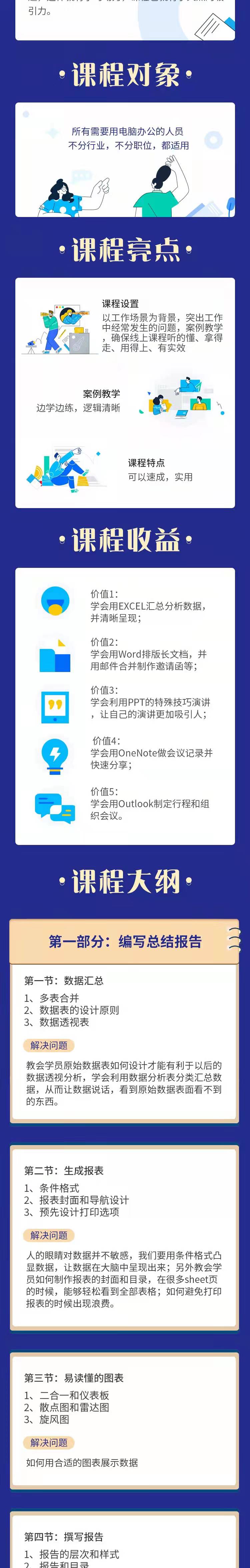 讓學員通過三個典型工作場景下,如何用 Office 辦公的學習,大大提升自己處理工作的效處理各種事物,通過典型的場景,和學員產(chǎn)生共鳴,讓他們發(fā)現(xiàn)學習的內容就是工作中遇到的問顆。這樣就右學習動力。課程就有了天然的吸引力。