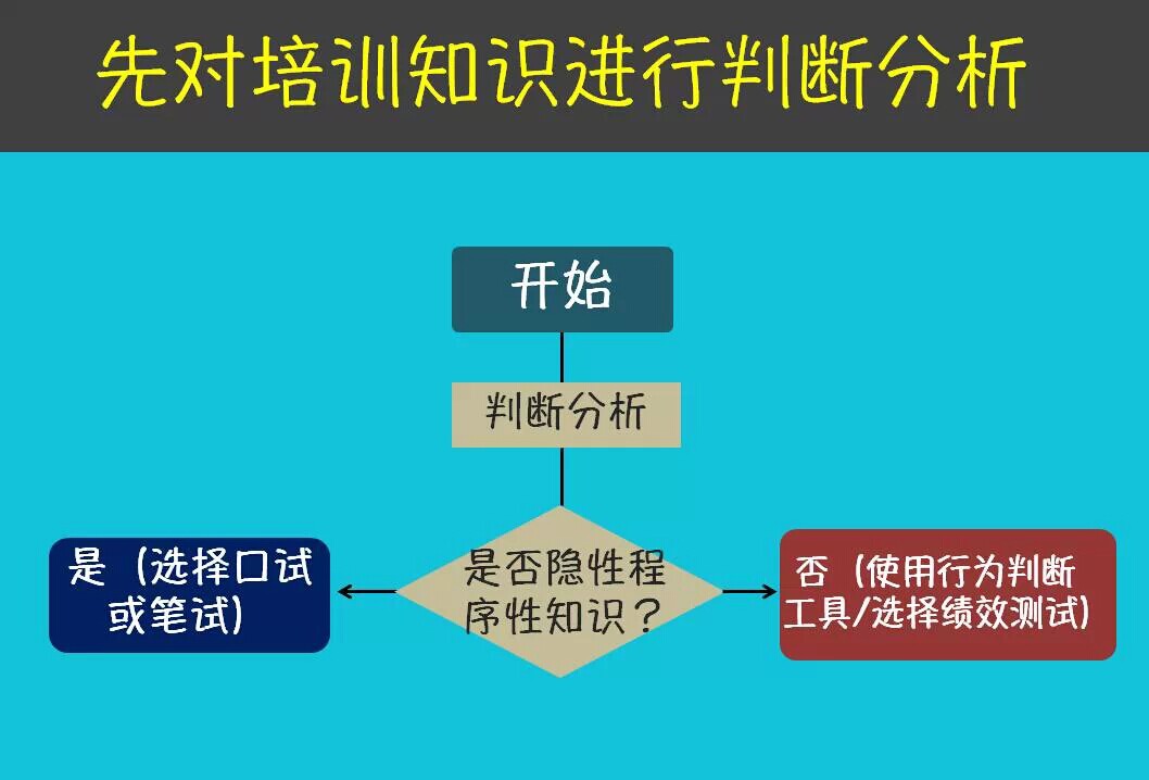 企業(yè)的管理者要了解此次培訓(xùn)的目的,是否“隱性的程序性知識(shí)”還是“顯性的程序性知識(shí)”來選擇用什么方式來進(jìn)行這個(gè)測試。