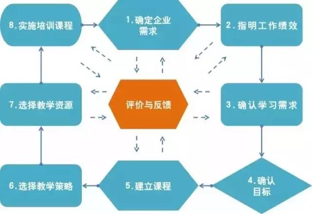 納德勒模型應由八個重要的事件組成,即確定企業(yè)需求、指明工作績效、確認學習需求、確認目標、建立課程、選擇教學策略、選擇教學資源、實施培訓課程。